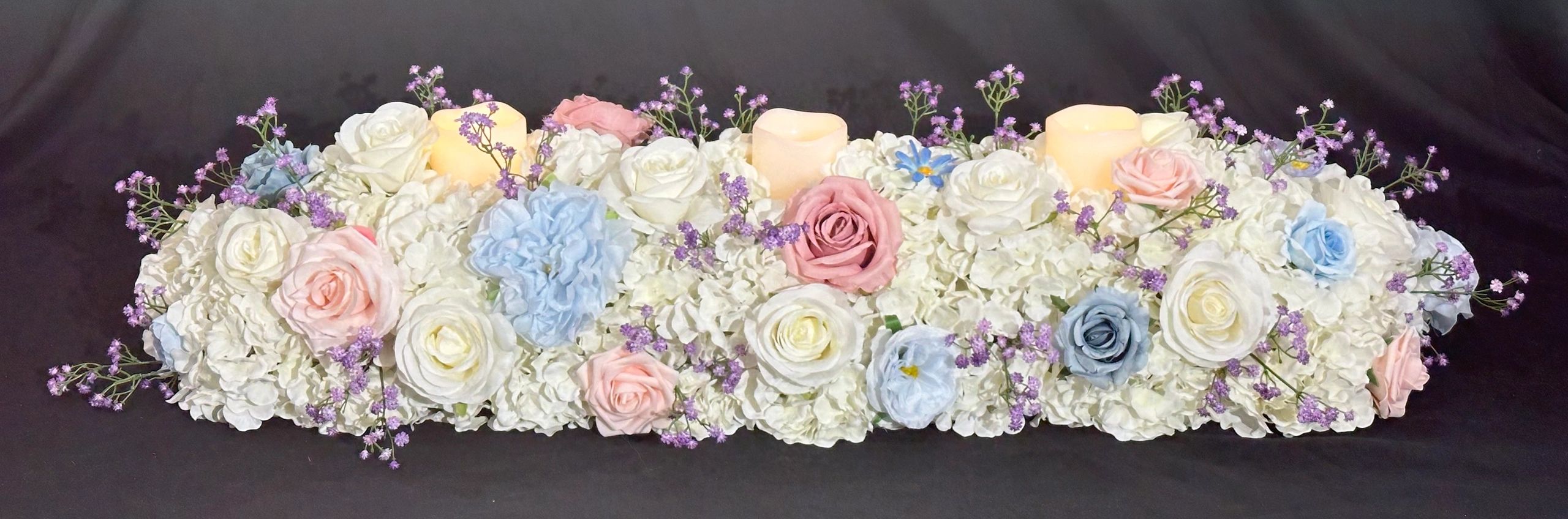 Sweetheart table with 3 LED candles.